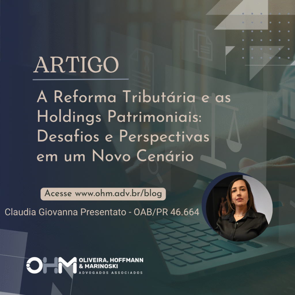 Conteúdo Jurídico Análises práticas e atualizadas sobre Direito do Trabalho Empresarial, Compliance e Gestão Jurídica — para transformar risco em estratégia. Saiba mais Fale Conosco A Reforma Tributária e as Holdings Patrimoniais: Desafios e Perspectivas em um Novo Cenário Claudia Giovanna Presentato[1] Introdução A Reforma Tributária brasileira, implementada pela Emenda Constitucional nº 132/2023 e regulamentada […]