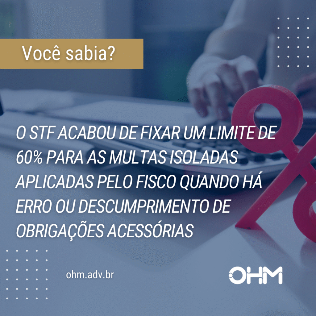Conteúdo Jurídico Análises práticas e atualizadas sobre Direito do Trabalho Empresarial, Compliance e Gestão Jurídica — para transformar risco em estratégia. Saiba mais Fale Conosco O STF acabou de fixar um limite de 60% para as multas isoladas aplicadas pelo Fisco quando há erro ou descumprimento de obrigações acessórias O tema, que se arrastava desde […]